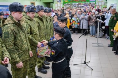 Курсанты "Подвига" вручили будущим защитникам Родины памятные подарки