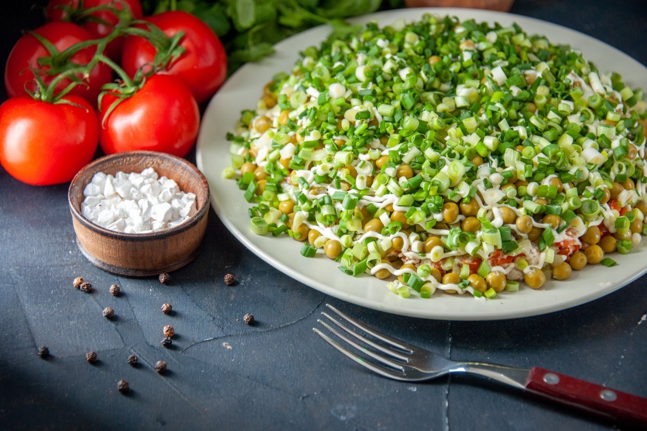 Ищете вкусный и простой салат, который можно приготовить за 15 минут? Попробуйте этот рецепт с добавлением курицы и ароматного горошка. Салат идеально подойдёт для быстрого ужина или праздничного застолья.