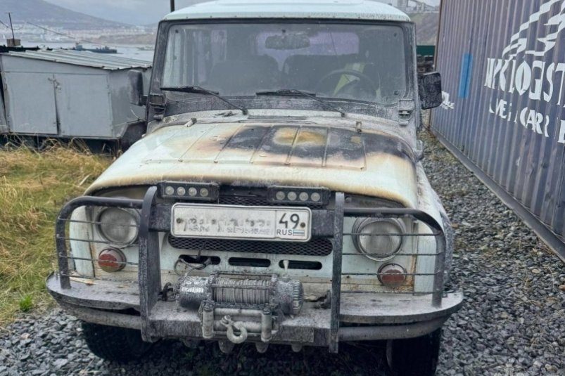 Автомобиль УАЗ загорелся на улице Марчеканской в Магадане. Фото: ГУ МЧС России по Магаданской области