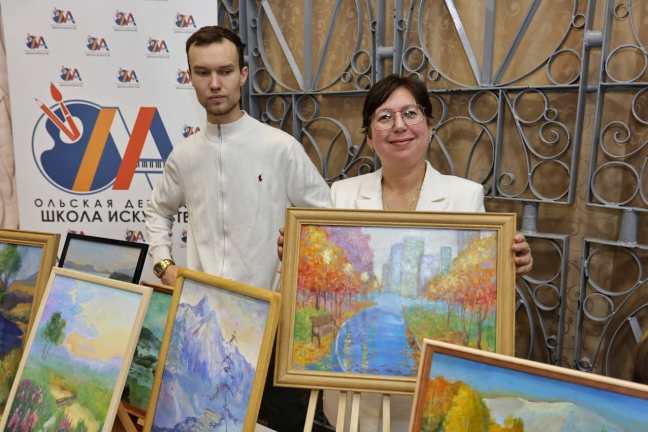 Сердцем события стала благотворительная ярмарка. Она объединила десятки неравнодушных рук. Здесь были не просто товары, а искренние послания поддержки: новогодние поделки, елочные игрушки, картины учеников местной Детской школы искусств, душистая выпечка. Особый отклик в сердцах нашли картины из камней главы округа Ирины Ерисовой.