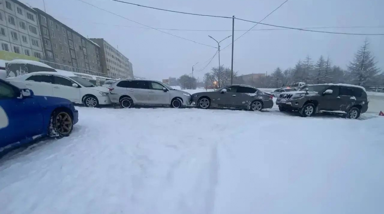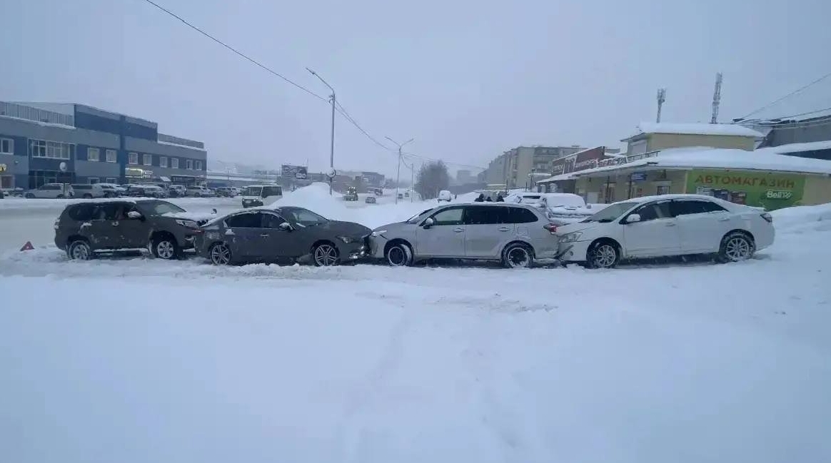 MagadanMedia, 10 декабря. В Магадане столкнулись четыре иномарки: Toyota Fielder, Nissan Skyline, Toyota Land Cruiser Prado и Toyota Premio. Авария случилась напротив дома 28 на улице Кольцевой днём 10 декабря, сообщает Госавтоинспекция УМВД России по Магаданской области.