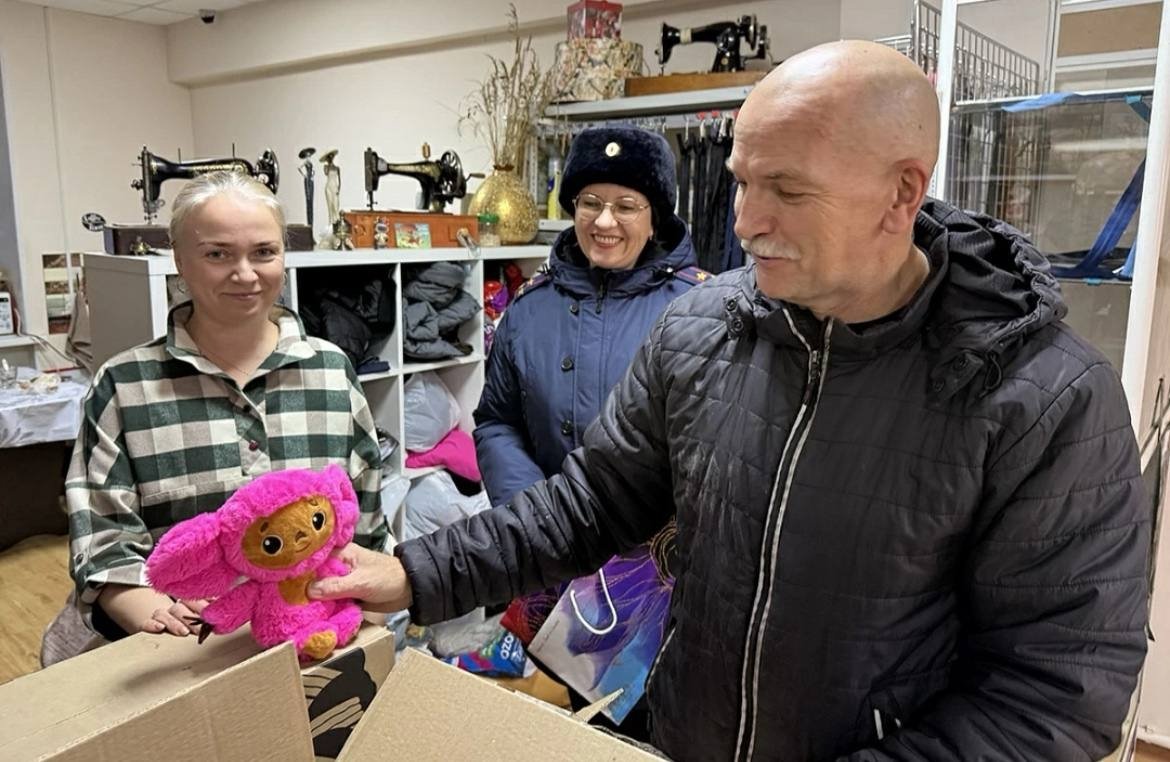 Председатель Общественного совета при УМВД Роман Корсун поблагодарил организаторов за возможность поучаствовать в акции и от себя лично передал бойцам на передовую один из неофициальных символов специальной военной операции — Чебурашку.