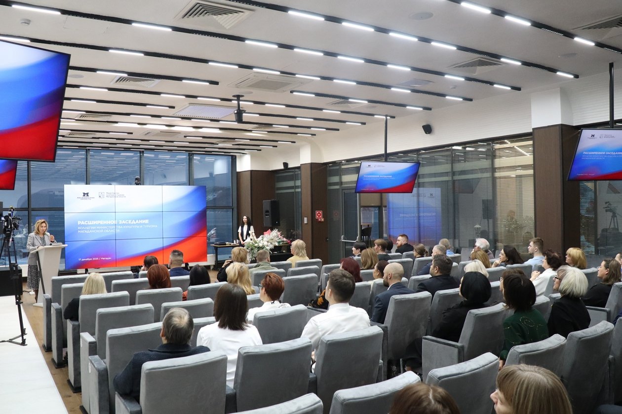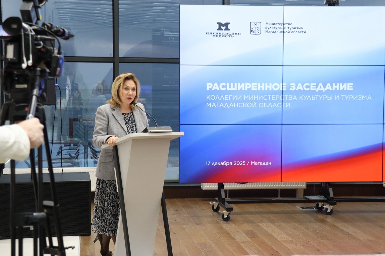 Во второй части коллегии был представлен доклад об итогах деятельности министерства культуры и туризма Магаданской области и подведомственных учреждений — его представила Ольга Абдуллина, руководитель отдела музейной, библиотечной, образовательной деятельности народного творчества и искусства министерства культуры и туризма. Так, говоря о крупных достижениях года она отметила, номинацию Магаданского музыкального и драматического театра на престижную национальную театральную премию "Золотая Маска", а также две статуэтки федеральной "Пушкинской карты. Премия" в региональной номинации и среди концертных организаций.
