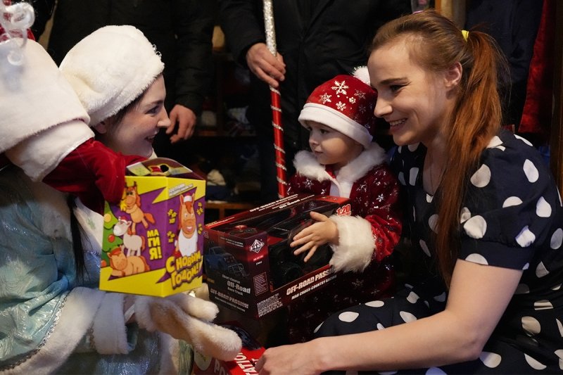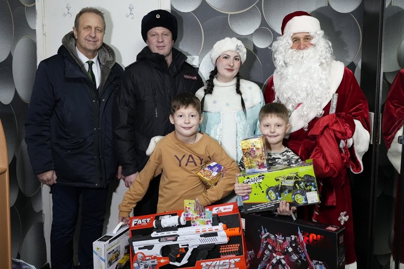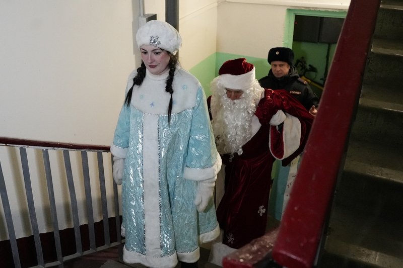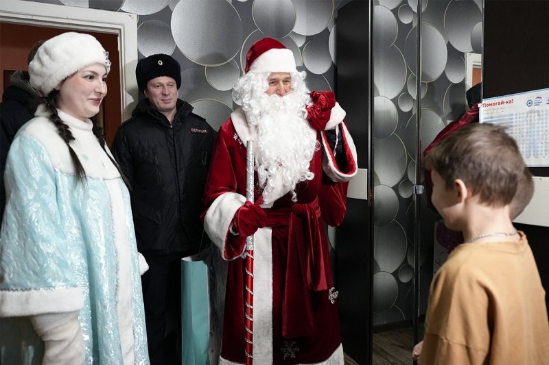 Дед Мороз — начальник Центра профессиональной подготовки УМВД Александр Харламов и Снегурочка — инспектор ПДН ОМВД России по городу Магадану Алена Исоян поздравили мальчиков и девочек с наступающими праздниками, а также в игровой форме напомнили о правилах безопасности. Вместе с ними в гости к детворе пришел председатель совета ветеранов ОВД Вадим Кузнецов.
