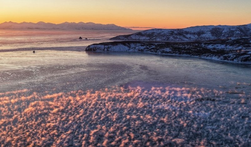 На Охотском побережье — преимущественно без осадков. Ветер северо-восточный 9–14 м/с, днем местами 15–20 м/с с низовой метелью. Температура воздуха ночью 13–18, днем 10–15 мороза.