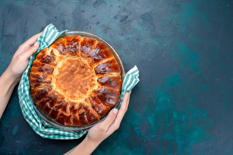 Отправляем начинку в тесто, убираем пирог в духовку на 40 минут, готовим при 180 градусах.