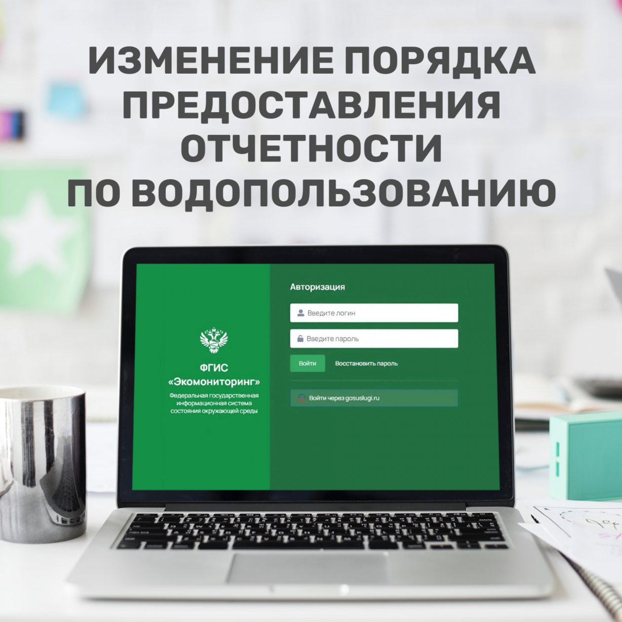 Для доступа к ФГИС "Экомониторинг" водопользователь должен авторизоваться на официальном сайте. Инструкция по работе с ФГИС "Экомониторинг" в подкрепленном файле.