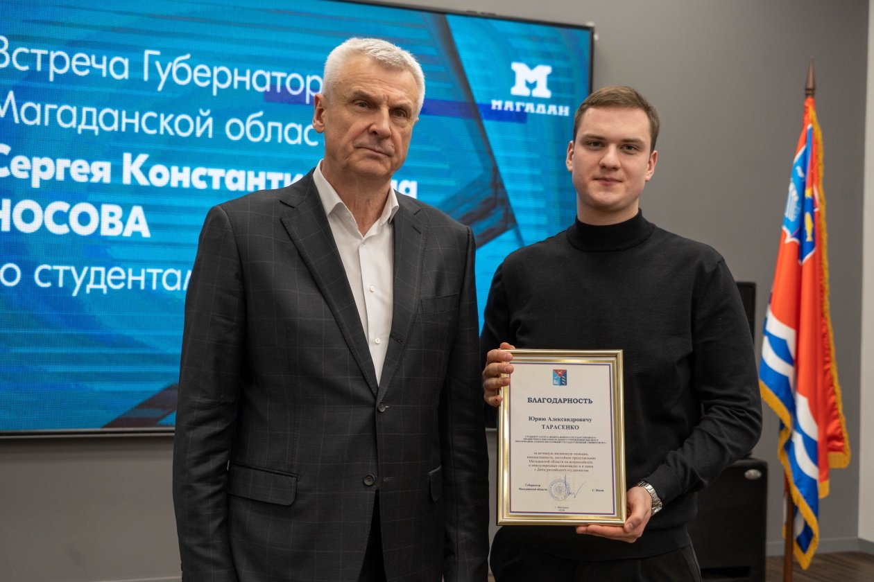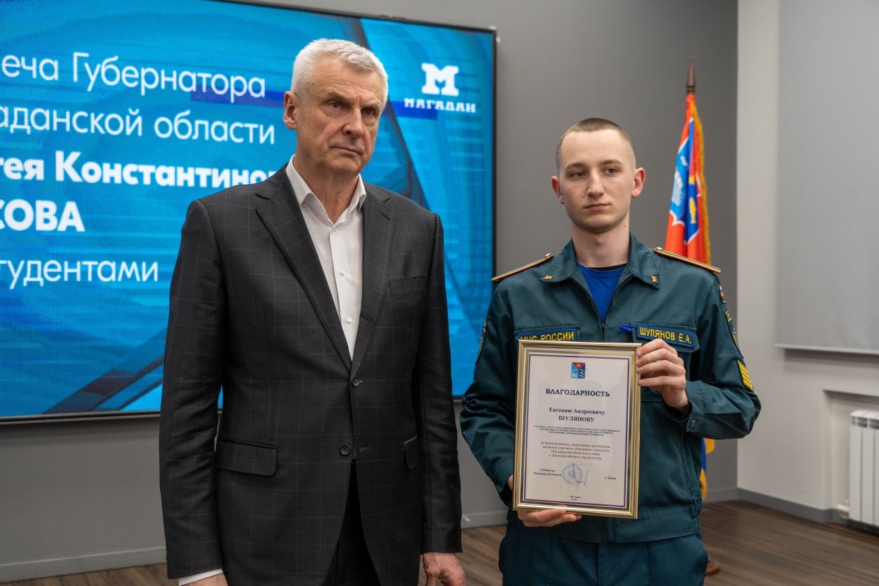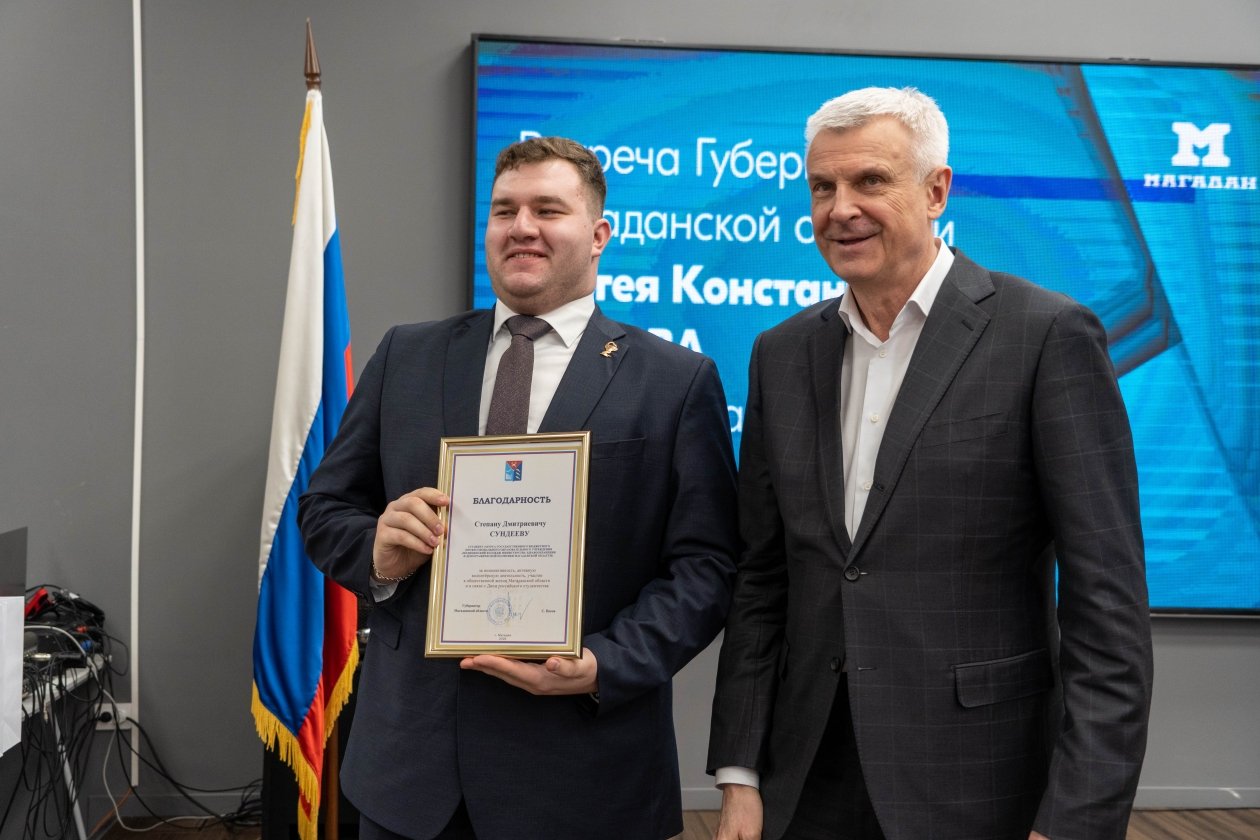 В завершение встречи губернатор вручил благодарственные письма студентам за активное участие в студенческом движении и успешную учебную деятельность. Среди награждённых — представители медицинского, промышленного и художественного образования, а также будущие специалисты в сфере государственного управления и горного дела: Екатерина Жданова, Владислав Звоновских, Сергей Калиниченко, Егор Кожухов, Степан Сундеев, Юрий Тарасенко и Евгений Шулянов.