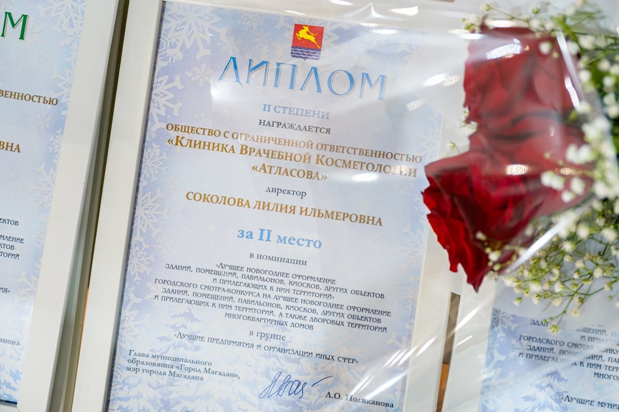 В группе "Лучшие предприятия и организации иных сфер деятельности" второе место присудили клинике врачебной косметологии "Атласова" за оформление объекта и прилегающей к нему территории на улице Набережной реки Магаданки, а первое место занял офис компании "Автоком" на Колымском шоссе.