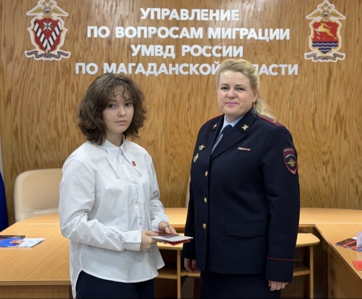 MagadanMedia, 30 января. Начальник отдела по вопросам миграции ОМВД России по городу Магадану Надежда Белых вручила юным магаданцам главный в жизни документ — паспорт гражданина Российской Федерации, сообщает пресс-служба УМВД России по Магаданской области.