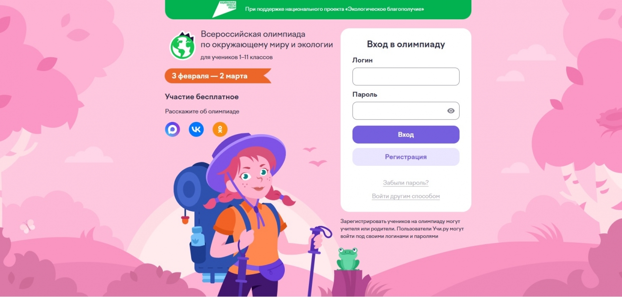 Для участия необходимо зарегистрироваться на сайте или войти с логином и паролем от Учи.ру. Для успешного прохождения олимпиады не требуется углублённых знаний школьной программы. В заданиях ребёнка ждёт не только полезная, но и интересная информация и факты об окружающем мире. В этом году участникам предстоит узнать, как себя вести в заповеднике, почему полезно разделять мусор, можно ли превратить свалку в курорт, и какой журавль встречается только в России. Отдельное место в заданиях получила тема личного вклада в экологическое благополучие.