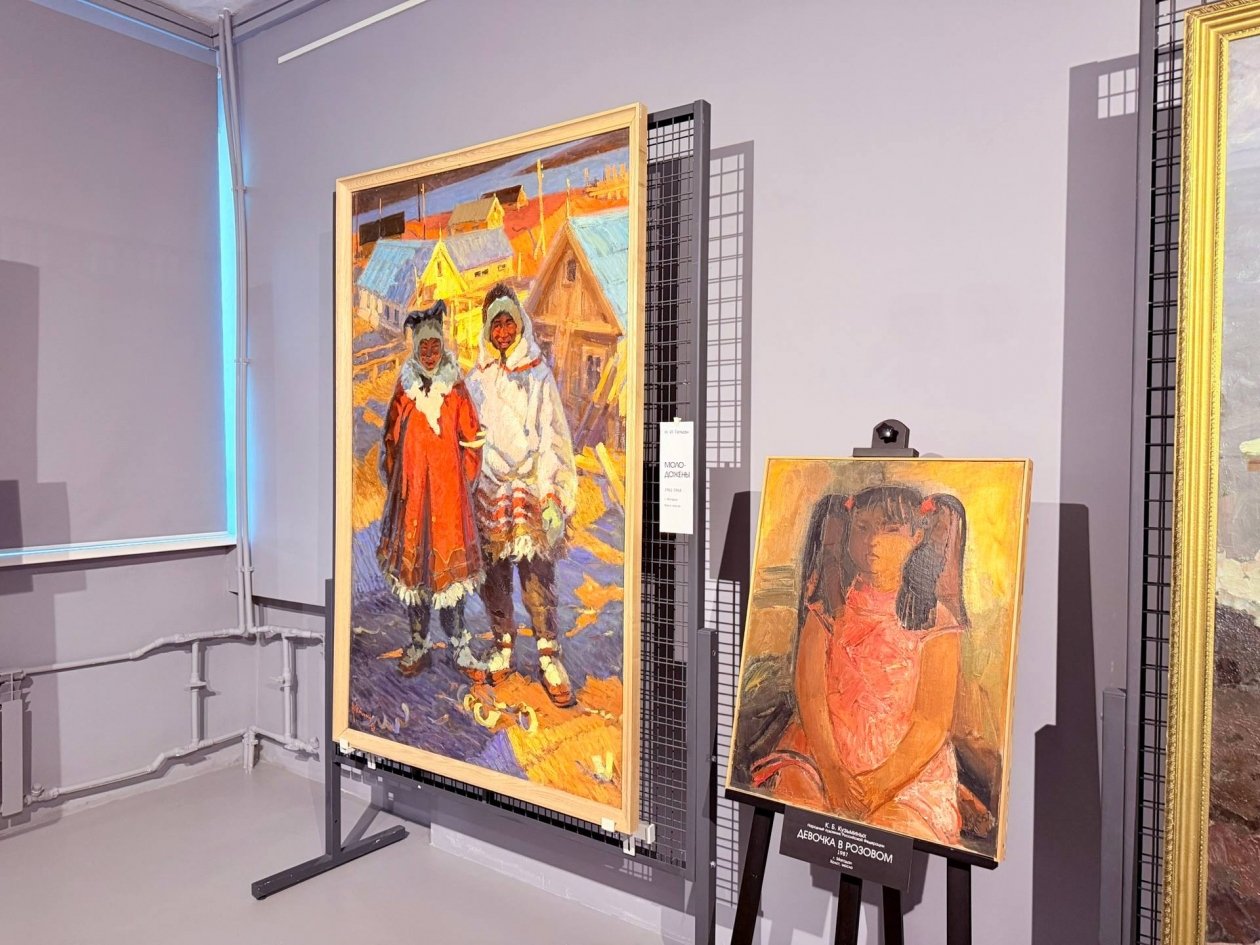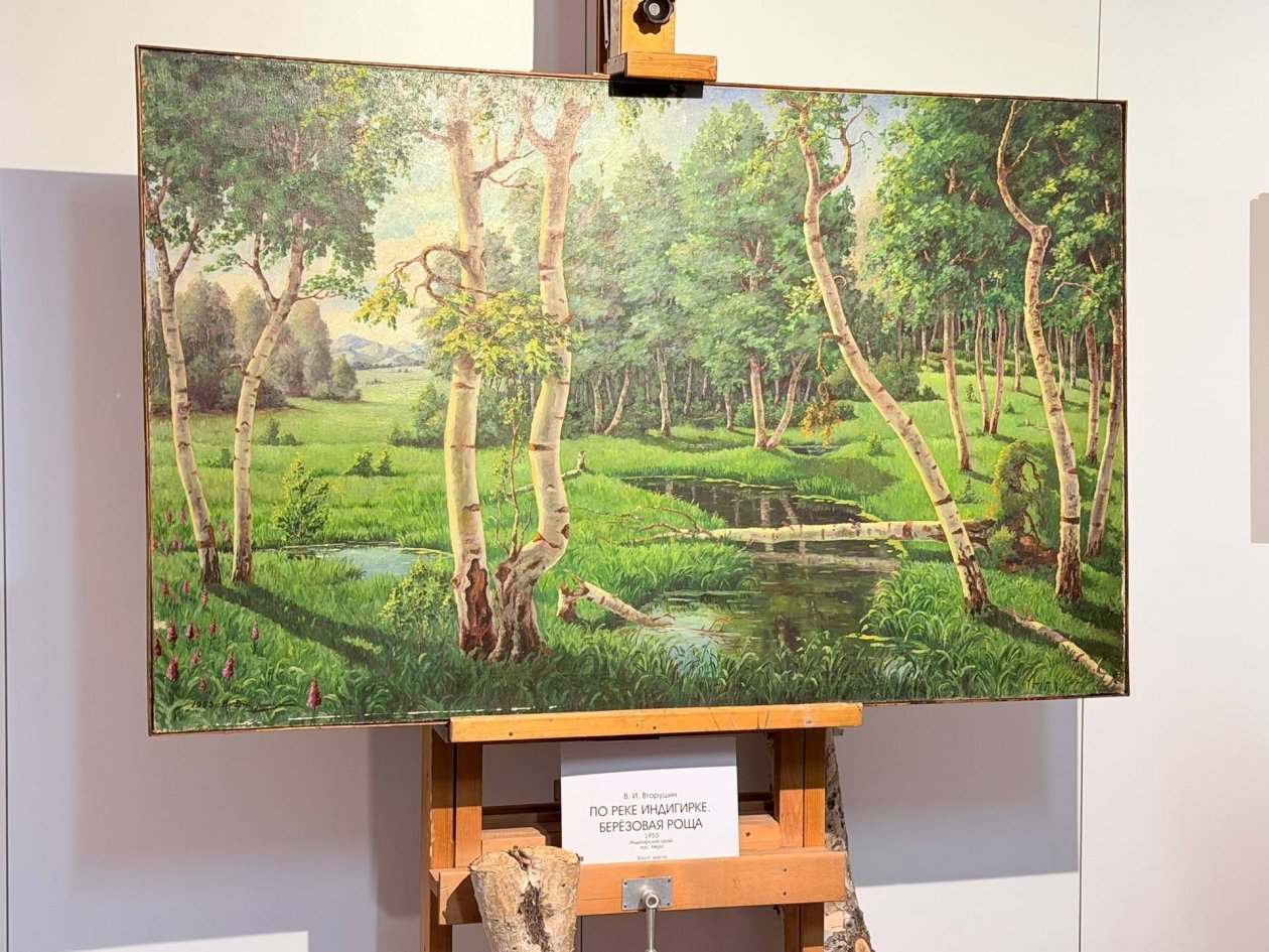 Центральное место занимает картина Василия Вторушина "По реке Индигирке". Она задаёт эмоциональный и смысловой тон всей выставке. Представленные живописные полотна известных художников объединяет эмоциональная выразительность и глубокое чувство любви к родной земле и людям.