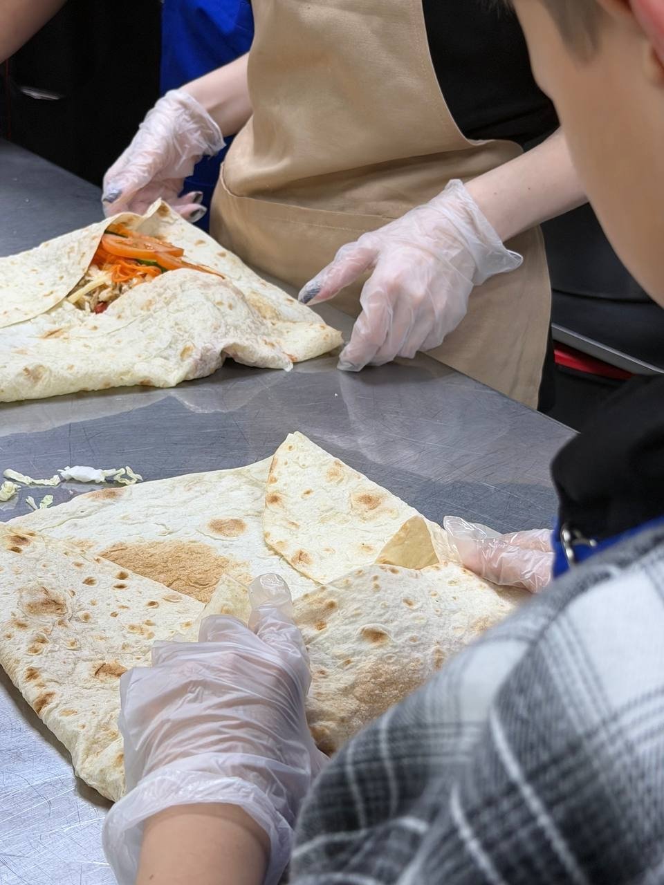 Кульминацией встречи стал мастер-класс. Под руководством поваров ребята самостоятельно приготовили шаурму, научившись правильно выкладывать начинку и аккуратно сворачивать лаваш.