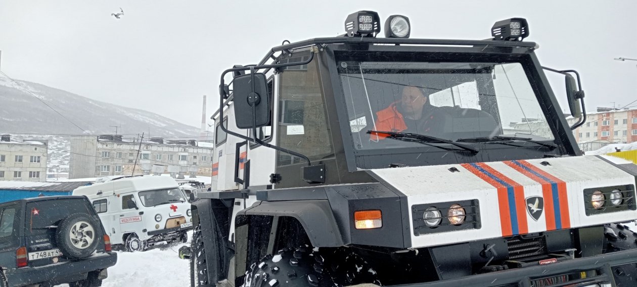 На место происшествия прибыли спасатели Пожарно-спасательного центра Магаданской области. Оценив обстановку, они отбуксировали застрявшие транспортные средства с помощью специальной техники повышенной проходимости — снегоболотохода "Кречет". Спасатели закрепили трос и аккуратно вытащили автомобили медиков на расчищенный участок дороги.