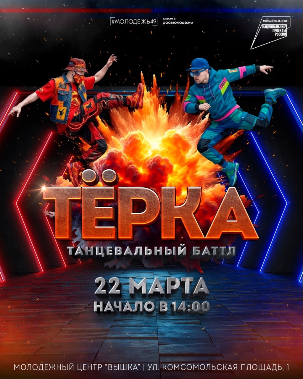 MagadanMedia, 16 марта. В воскресенье, 22 марта с 14:00 до 20:00 в Молодежном центре будет проходить региональный чемпионат по уличным стилям танца "Тёрка". Его цель — содействие развитию молодежного творчества, вовлечение молодежи в творческую и спортивную деятельность, популяризация искусства современного танца в Магаданской области. Чемпионат соответствует целям и задачам национального проекта "Молодежь и дети".