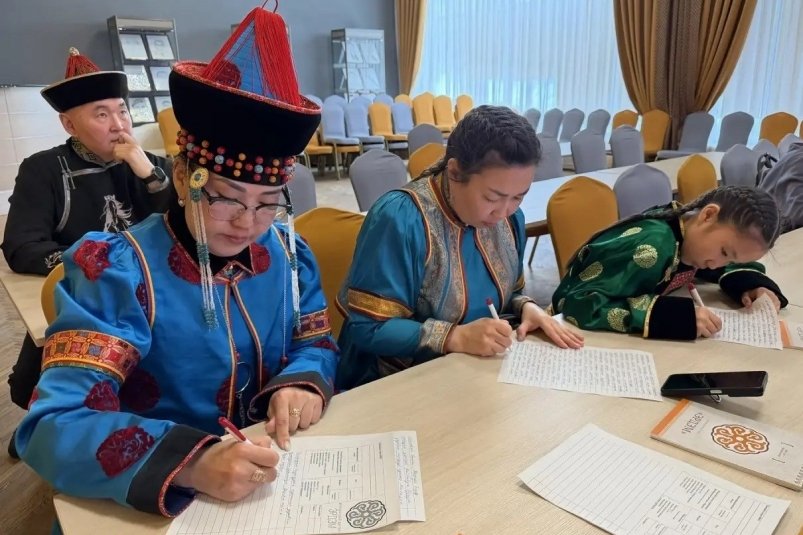 Диктант состоялся в смешанном формате: часть участников присутствовала очно, кто-то подключился онлайн. Каждый получил памятные сувениры — блокноты и ручки с логотипом "Эрдэм", доставленные из Агинска в знак культурного партнерства.