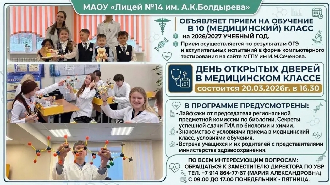 Знакомство с условиями приема в медицинский класс, условиями обучения.