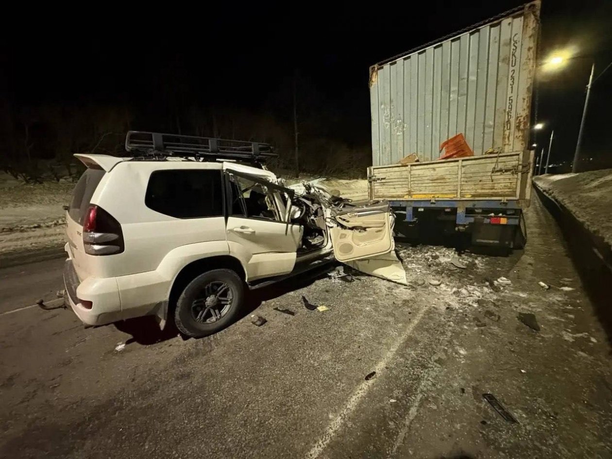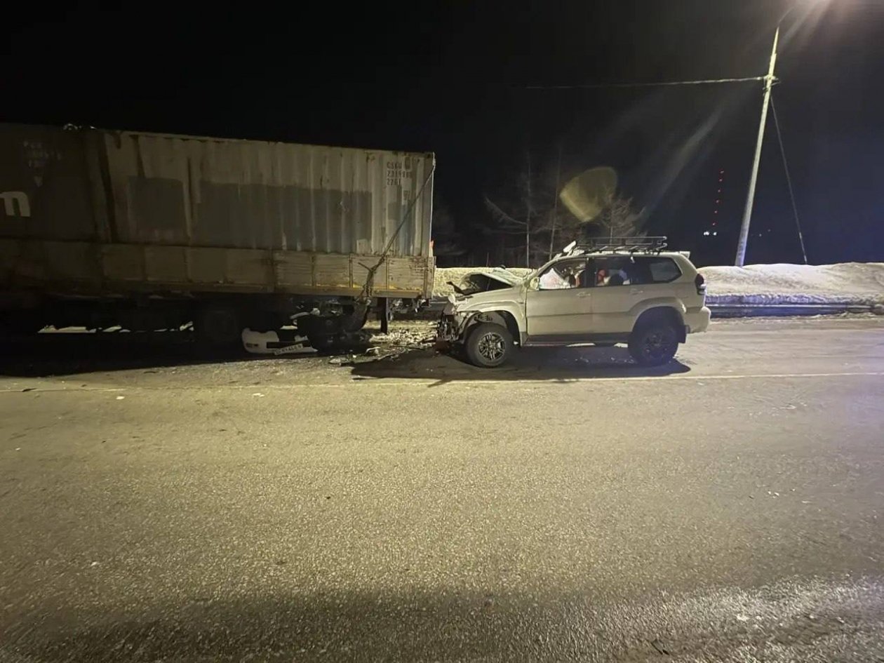 MagadanMedia, 20 марта. Вечером 19 марта на 5-м километре автодороги Магадан — Балаганное — Талон произошло ДТП. Госавтоинспекторы УМВД установили, что 44-летний водитель автомобиля Toyota Land Cruiser Prado не выбрал безопасную дистанцию до движущегося впереди транспортного средства и совершил столкновение с большегрузом КамАЗ, которым управлял 37-летний мужчина, сообщает Госавтоинспекция УМВД России по Магаданской области.