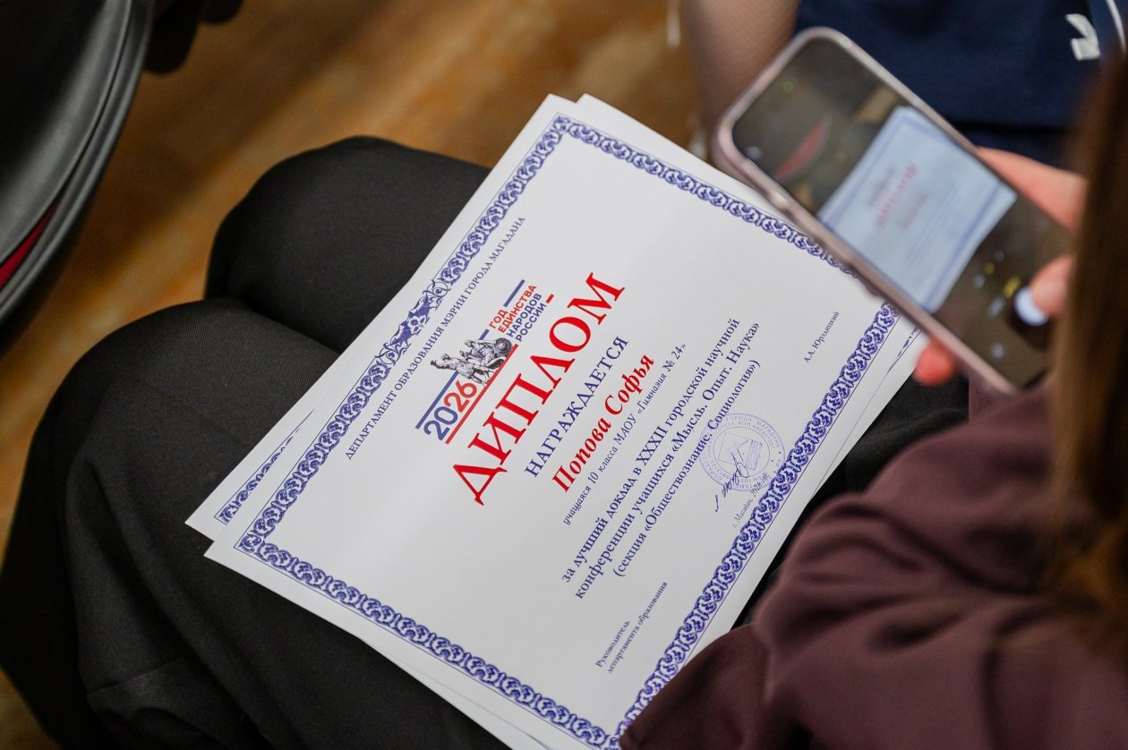 MagadanMedia, 27 марта. В Магадане подвели итоги XXXII городской научной конференции учащихся 8–11 классов "Мысль. Опыт. Наука" (16+). В мероприятии приняли участие более 100 школьников из 19-ти магаданских школ и трёх округов области — Ольского, Хасынского и Ягоднинского, сообщает ИА MagadanMedia в пресс-службе мэрии Магадана.