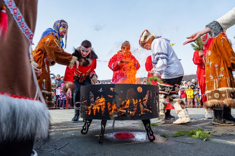 В начале фестиваля была соблюдена традиция кормления огня, который особенно почитают народы Севера: Дух огня считается покровителем домашнего очага. А дружный хэдэ, с эвенского переводится как "хороводный танец", стал стартом яркого фестиваля. Участницей действия была и мэр Магадана Лариса Поликанова.