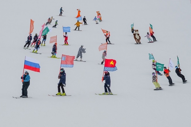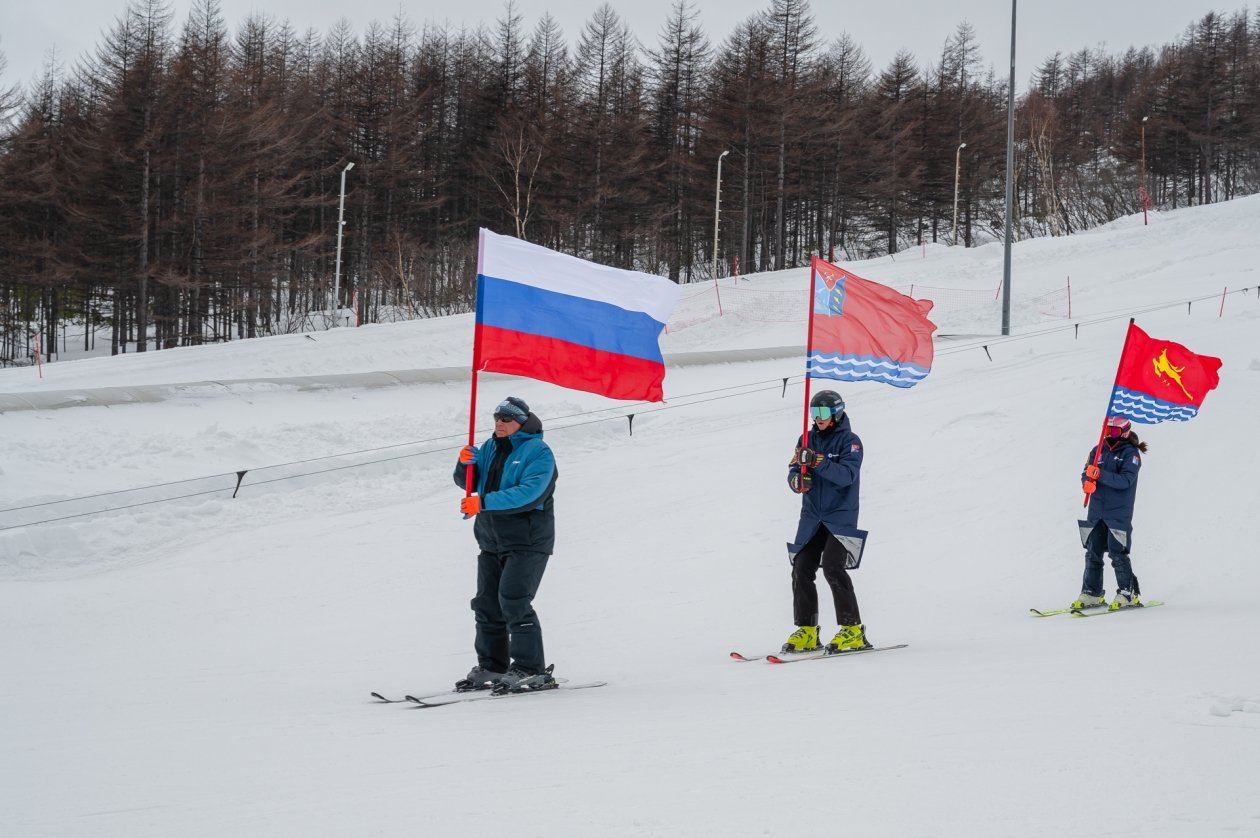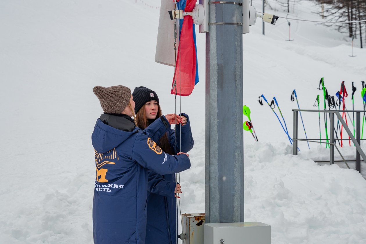 Флаг нашей страны под гимн Российской Федерации торжественно подняли серебряный призер чемпионата России Злата Аввакумова и победитель первенства России, участница Олимпийских игр в Пекине, чемпионка страны в индивидуальных и смешанных заездах, призер этапов Кубка России Александра Паршина.