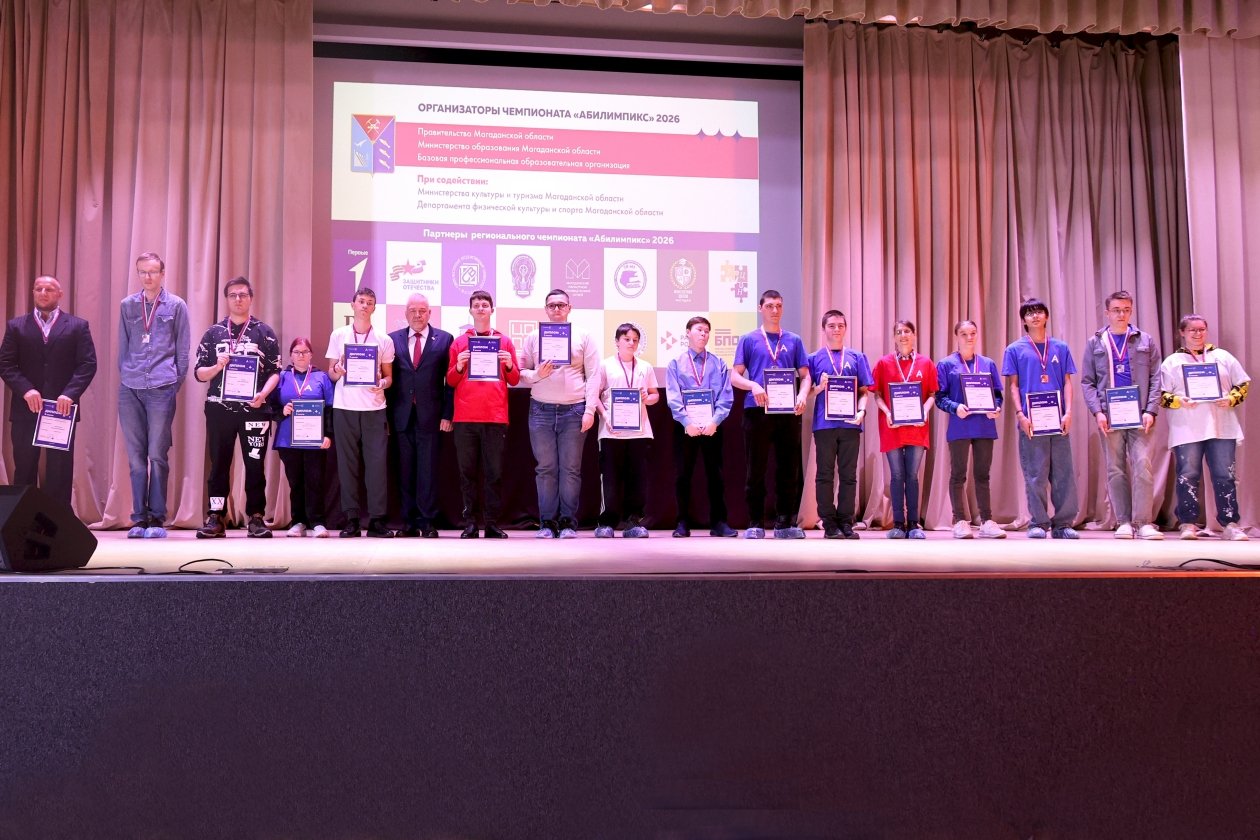 Победителями IX регионального чемпионата "Абилимпикс" стали студенты Магаданского областного центра образования № 1 Владимир Тучин ("Флористика"), Юлия Денисенко ("Мастер по обработке текста"), Ирина Смирнова ("Вязание спицами"), Михаил Карпишин ("Столярное дело"), учащиеся Колледжа сервиса и технологий Николай Березин ("Блинопек"), Вероника Ситникова ("Повар региональной кухни (выпечка расстегай "Северный")), Александр Курткин ("Мастер по приготовлению пиццы"), Василиса Хорошева ("Мастер по обработке текста"), представители Магаданского промышленного техникума Роман Малебаев ("Слесарное дело") и Никита Мелешко ("Столярное дело"), студент Магаданской областной школы-интерната Виктория Башлыкова ("Швея"), представитель Магаданского областного центра образования № 2 Богдан Титов ("Работник зеленого хозяйства"), учащийся Северо-Восточного государственного университета Александр Емелин ("Звукорежиссура"), студент Магаданского политехнического техникума Егор Ляжков ("Веб-разработка (Программирование)), учащиеся Строительно-технического колледжа Виктор Нечаев ("Облицовка плиткой"), ветераны СВО Николай Голубничий ("Столярное дело") и Богдан Атласюк ("Сварочные технологии"), а также Робин Венедиктов ("Мастер по приготовлению пиццы"), Денис Коренной ("Бисероплетение"), Кристина Панова ("Выпечка хлебобулочных изделий") и Елена Храмцова ("Художественное вышивание").