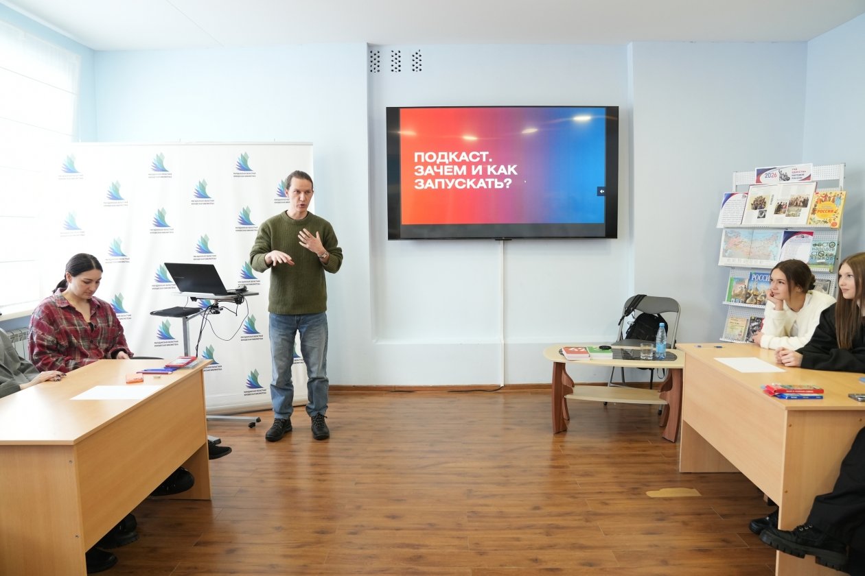 MagadanMedia, 6 апреля. В творческой лаборатории "СеВерность" Магаданской областной юношеской библиотеки прошла встреча с ведущим подкаста "Ваши уши" Дмитрием Андреевым. Он рассказал ребятам, как сформулировать идею, придумать название, обложку и выбрать формат для своего подкаста.