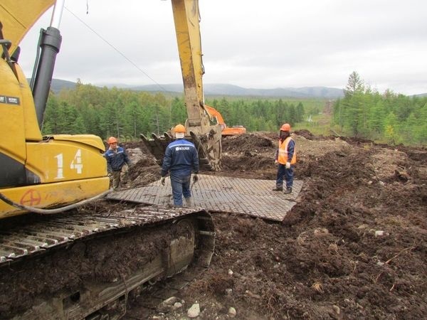 "Модульное дорожное покрытие состоит из плит на основе полимерных материалов с замковыми соединениями, которые собираются в полотна разных конфигураций. – рассказал директор дирекции по строительству энергообъектов на территории Магаданской области компании "ДВЭУК" Дмитрий Черных. – Новая технология широко применяется в нефтегазовой отрасли при строительстве трубопроводов и отлично зарекомендовала себя. Мы решили ее использовать в качестве альтернативы традиционному способу – лежневым дорогам из древесины. Всего проектом строительства ЛЭП предусмотрено устройство до 80 километров лежневых дорог на болотистой местности".