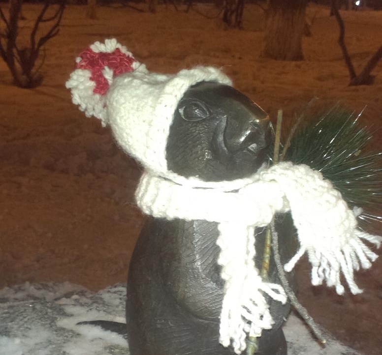 Участники, подавшие заявки на конкурс, сейчас изготавливают одежки для уличных предметов, они должны успеть к субботе. Заметим, что некоторые деревья уже утеплены, одет в вязаные вещи и Евражка, расположенный в сквере 70-летия Магадана.