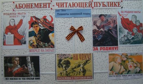 Также в отделе работает стенд, посвященный 70-летию Великой Победы, на котором размещены военные плакаты 1941−1943 годов.