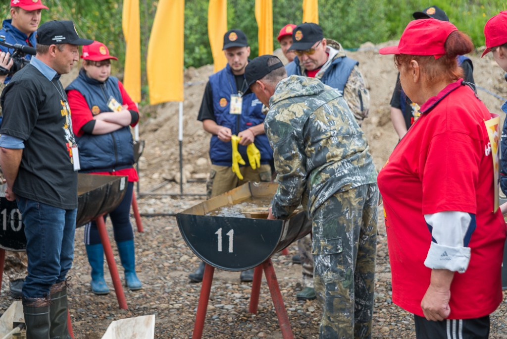В пределах участка соревнования разместили грунт, содержащий золото. Участникам выдали промывочные лотки сибирского типа. На поиск золота каждому выделили не более 30 минут. Затем золото взвесят на электронных весах.