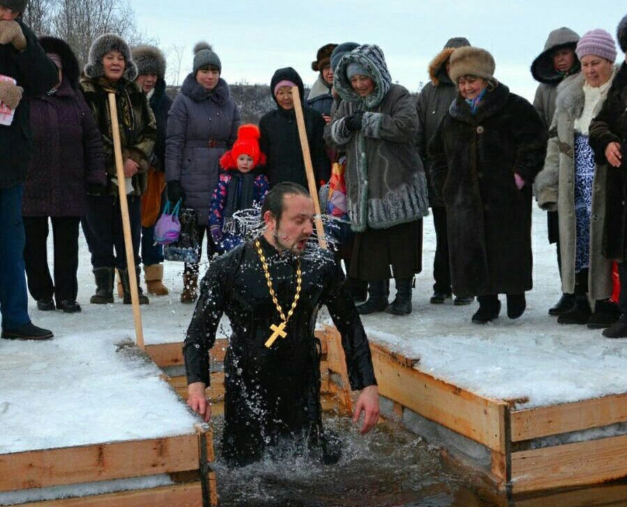 Купание в ледяной иордани в поселке Ола на Колыме началось с погружения пастыря. Фото: Фото: Виталий Чернов