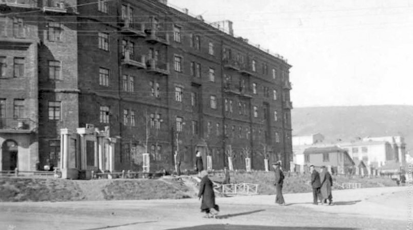 Газета "Советская Колыма" в номере от 20 февраля 1939 года сообщила о начале земляных работ на строительстве 43-квартирного кирпичного дома на углу улицы Сталина и Колымского шоссе. Здание стало вторым сооружением в историческом центре города. Первый дом возвели рядом в 1939–1940 году. На первом этаже 57-квартирного дома долгие годы находился магазин "Полярный", сообщает MagadanMedia.