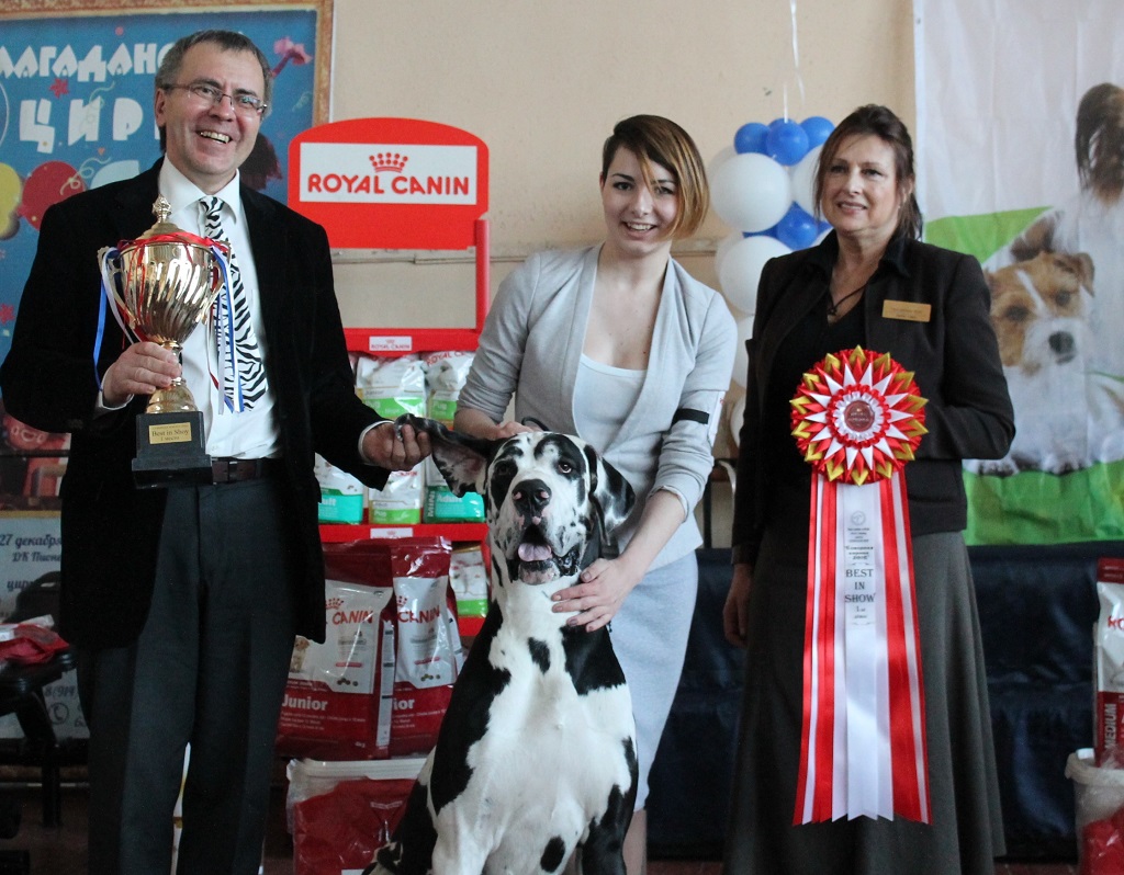 По итогам 10 групп собак лучшие представители пород вышли на финальное сравнение. Эспертам было непросто выбрать из разных пород самого лучшего. В итоге третье почетное место досталось керри блю терьеру, на второй ступени пьедестала обосновалась немецкая овчарка, а "золото" вручили самому крупному участнику выставки, немецкому догу по кличке Чароит.