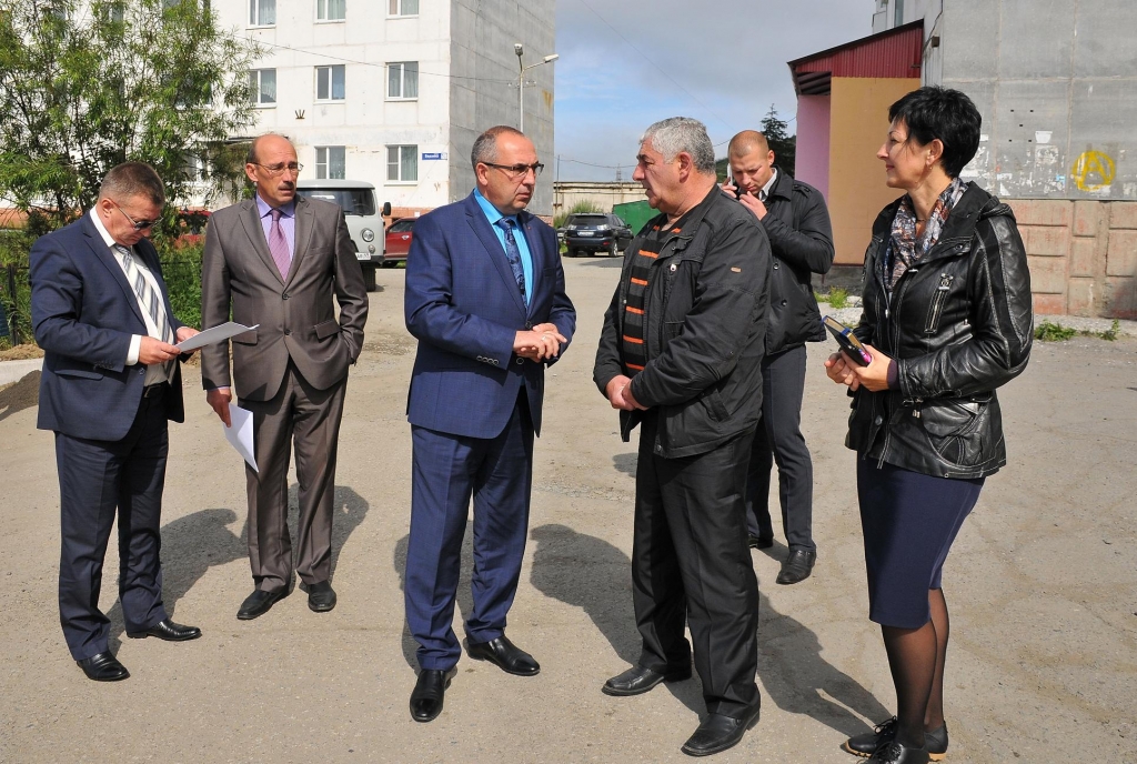 С ходом капитального ремонта дворовых территорий домов № 4, 4/1, 4/2, 6 на улице Берзина и № 9, 13, 15, 17, 20 на улице Шандора Шимича мэр Магадана Юрий Гришан ознакомился на выездном совещании. Вместе с главой города объект посетили руководитель департамента САТЭК Надежда Горностаева, ее заместитель Владислав Головин, зампредседателя Магаданской областной Думы Оксана Бондарь, директор компании "Магтэк" Левон Авакян.