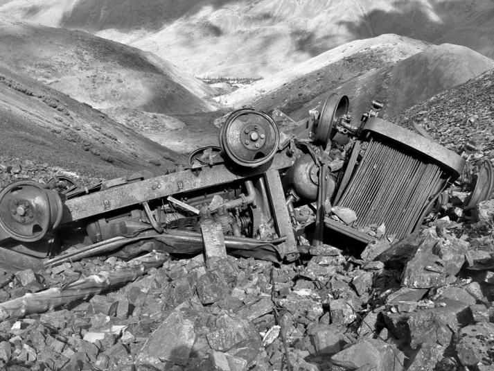 Рядом со входом в штольню, как всегда, много брошенного оборудования и запчастей к горной технике.