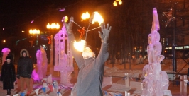 Новоиспеченные поделки изо льда и яркое представление с огнем от гостя из Прибалтики собрали около 100 горожан