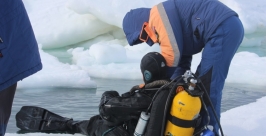 Первое погружение под лед в этом году отработали магаданские спасатели-водолазы