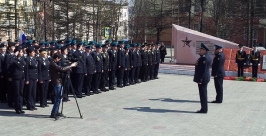 Торжественное построение, посвященное 94-й годовщине образования пограничных войск, провели на Алее памяти колымской столицы