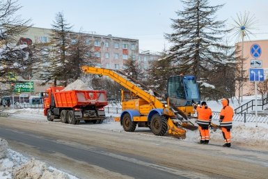 В Магадане продолжается расчистка от снега участков улично-дорожной сети