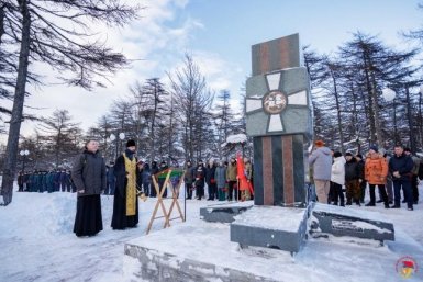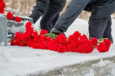 Представители думы, правительства, военные, полицейские и общественники почтили память воинов минутой молчания и возложили цветы к мемориалу