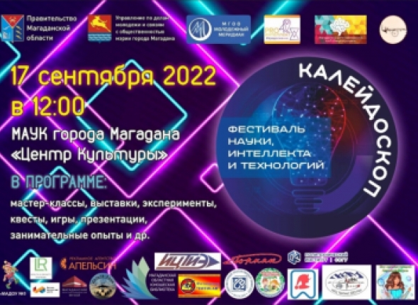 Фестиваль науки, интеллекта и технологий "Калейдоскоп" (6+) пройдет в Магадане 17 сентября с 12.00 до 16.00 в Центре культуры (просп. Карла Маркса, 35).
