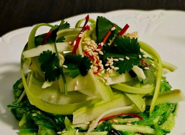 Лёгкий, свежий салат с азиатскими нотами: хрустящая чукка, кислинка зелёного яблока и нежный ореховый соус создают сбалансированный вкус. Идеально подходит в качестве закуски или как самостоятельное блюдо. Су-шеф ресторана "Перевал" Павел Ледров поделился с ИА MagadanMedia гастрономическим рецептом.