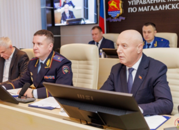 В УМВД России по Магаданской области под председательством главы управления Дмитрия Князева состоялось заседание коллегии по итогам деятельности в 2025 году. В мероприятии приняли участие Губернатор Магаданской области Сергей Носов, первый заместитель Председателя Магаданской областной Думы Александр Басанский, прокурор Магаданской области Дмитрий Разуваев, руководитель Следственного управления Александра Просина, врио главного федерального инспектора по Магаданской области Дмитрий Харин, а также руководители структурных подразделений УМВД и территориальных органов полиции, сообщает пресс-служба Магаданской областной Думы.