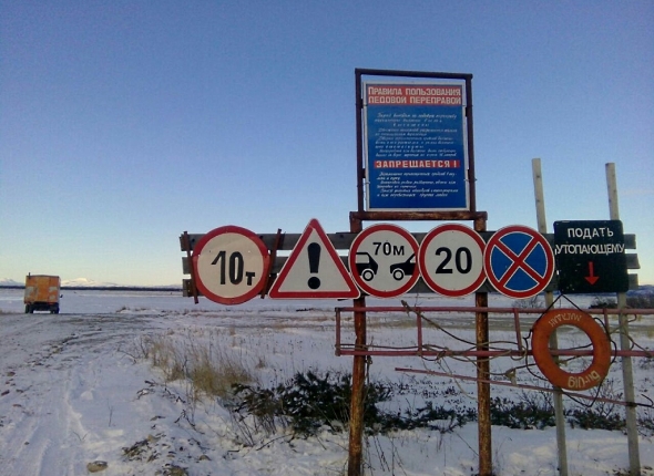 MagadanMedia, 10 декабря 2015. Сегодня специальная комиссия открыла ледовую переправу через реку Яна на Колыме для автомобилей общим весом до 10 тонн. Замеры показали, что толщина льда достигла 45 см. По льду проходит единственная дорога, которая ведет в села Тауйск, Балаганное и Талон Ольского городского округа. Населенные пункты были отрезаны от "большой земли" с 25 ноября, когда по реке перестал ходить паром. С установлением на водоеме льда необходимой толщины по зимнику смогут проезжать автомобили до 15–20 тонн, сообщает ИА MagadanMedia.