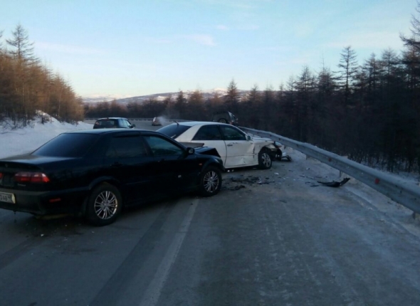 "Сегодня около 09.15 утра в районе поселка Дукча водитель автомобиля Toyota Mark II не справился с управлением, выехал на полосу, предназначенную для встречного движения, где столкнулся с автомобилем Mitsubishi Pajero с последующем столкновением с Honda Torneo, – рассказал старший инспектор ОГИБДД УМВД России по Магаданской области подполковник полиции Ян Протодьяконов. – В результате ДТП водитель автомобиля Toyota Mark II получил телесные повреждения".