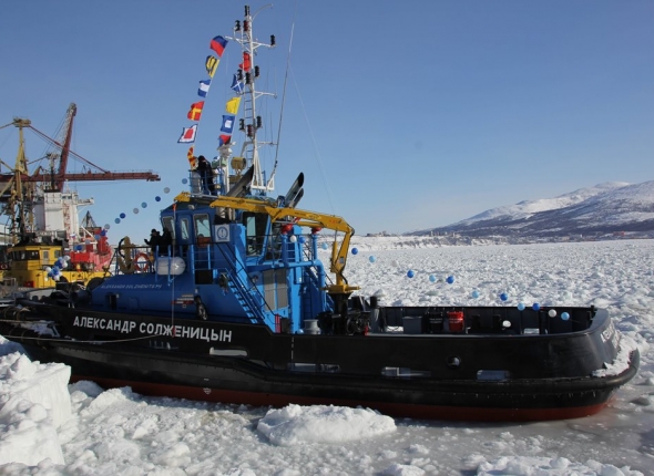 MagadanMedia, 14 марта 2016. Колымскую землю во второй раз посетил Александр Солженицын. Такое имя дали новому буксиру, который пришвартовался у причала Магаданского морского торгового порта. Он был построен на верфи голландской компании Damen в китайском городе Чандэ. Это судно приобретено в рамках очередного этапа программы модернизации морских ворот областного центра, сообщили ИА MagadanMedia в Управлении информационной политики Правительства Магаданской области.